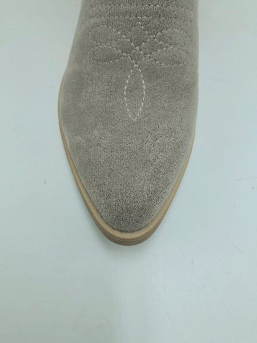Botte en synthétique façon daim ajourée de couleur grise, bout rond et talon normale (4.5cm)