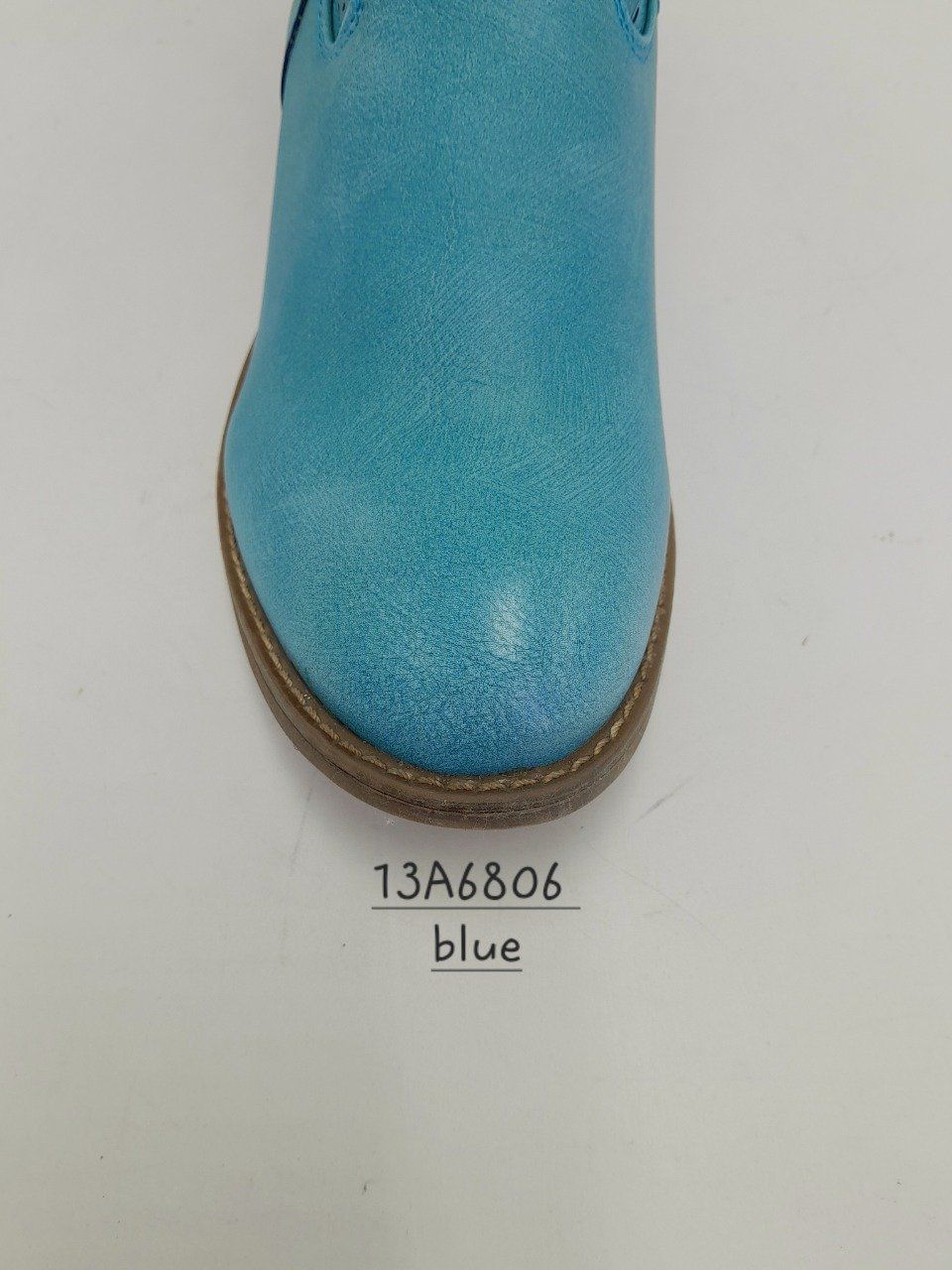 Botte haute en synthétique de couleur bleu (turquoise) avec ces motifs ajourée, grande fermeture éclair, bout rond et talon normale (hauteur du talon : 3.5 cm)
