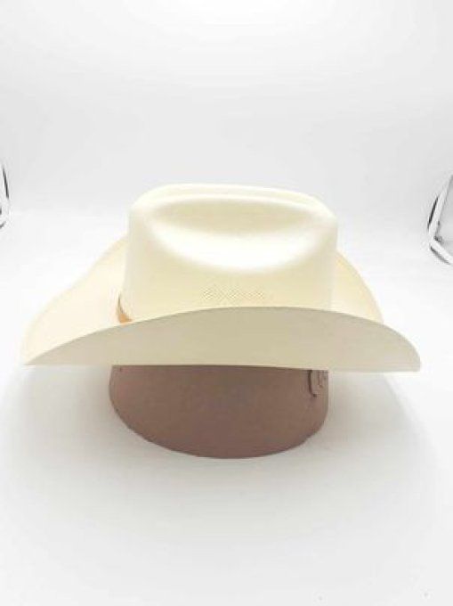 Chapeau enduit classique de couleur beige avec tour de chapeau marron clair fin et simple.