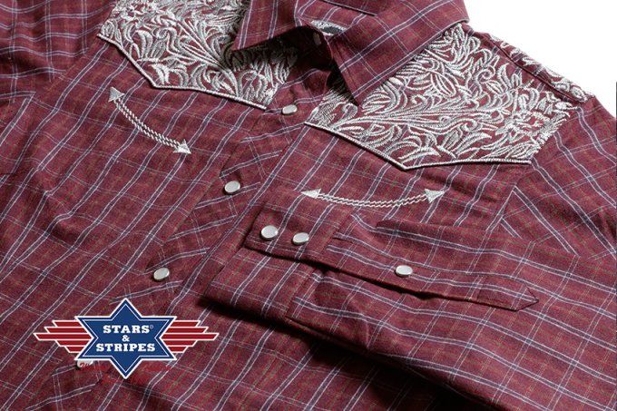 Chemise à carreaux couleurs bicolore son style de plastron brodés de motifs, fausses poches et boutons à pressions de couleur blanc nacre. Assortie à la chemise homme "CARLOS"