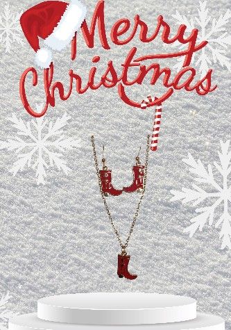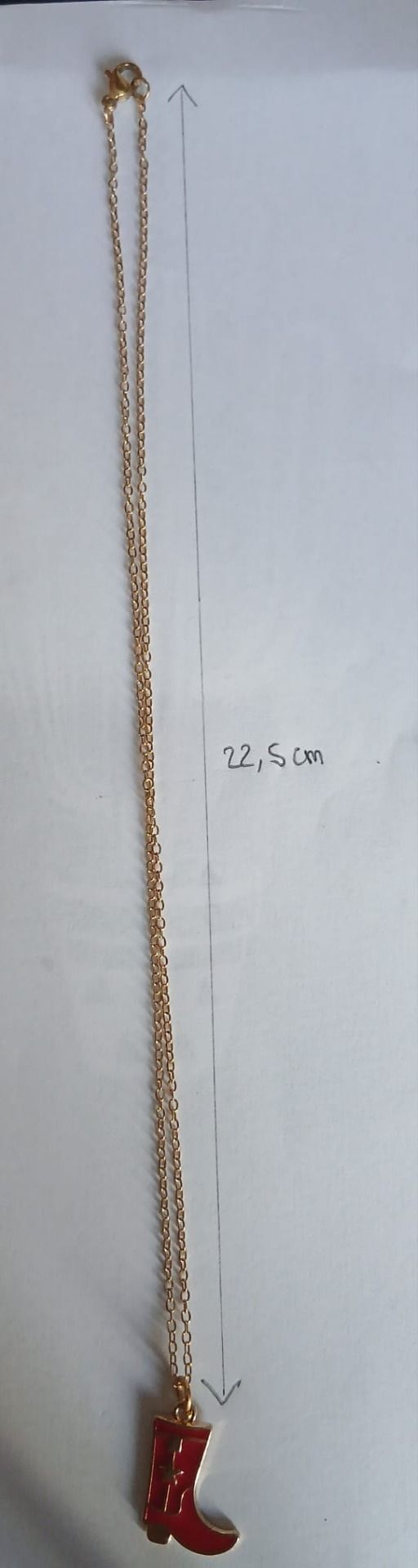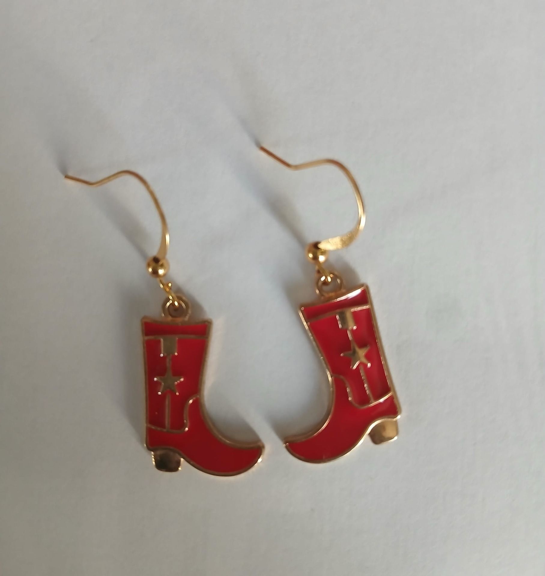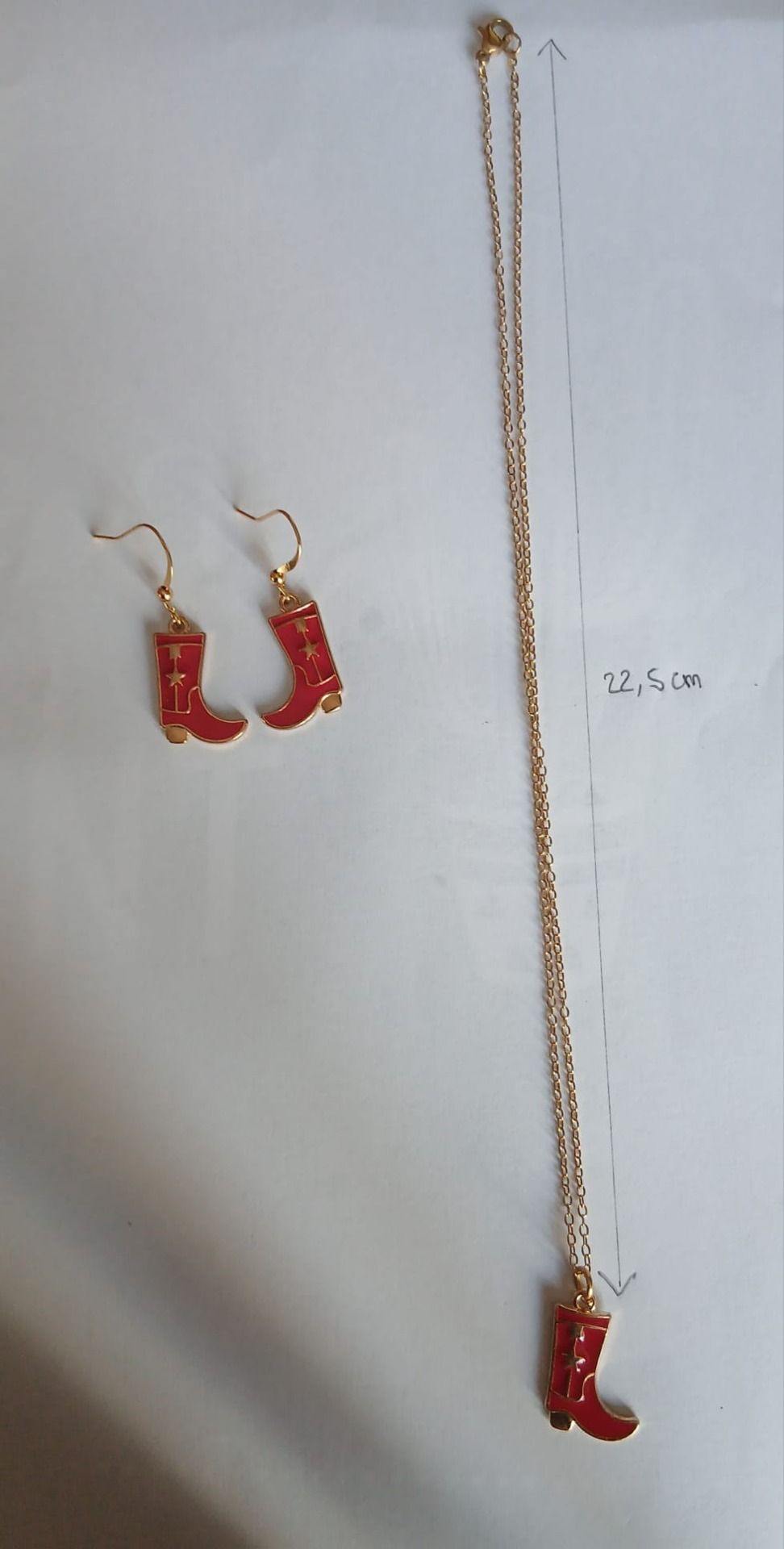 Ensemble collier chaine en acier dorée ainsi que sa paire de boucle d'oreilles botte de couleur rouge avec crochet en acier dorée inoxydable. attache caoutchouc offert avec la paire.