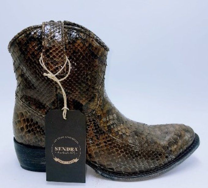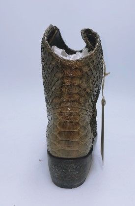 Bottine basse pour femme en cuir et python de couleur marron foncé sur tout l'ensemble avec fermeture éclair sur le côté, bout rond et talon normale (4cm)
