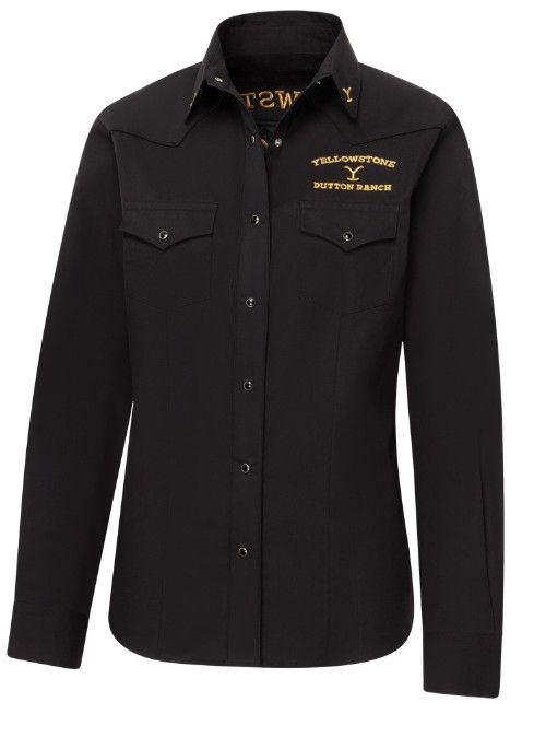 Chemise homme western noir classique Yellowstone avec broderies bicolores sur le devant et le dos de la chemise le logo officiel de Yellowstone le célèbre «Y» de la marque Yellowstone, coupe ajustée, 2 poches et bouton - pressions.